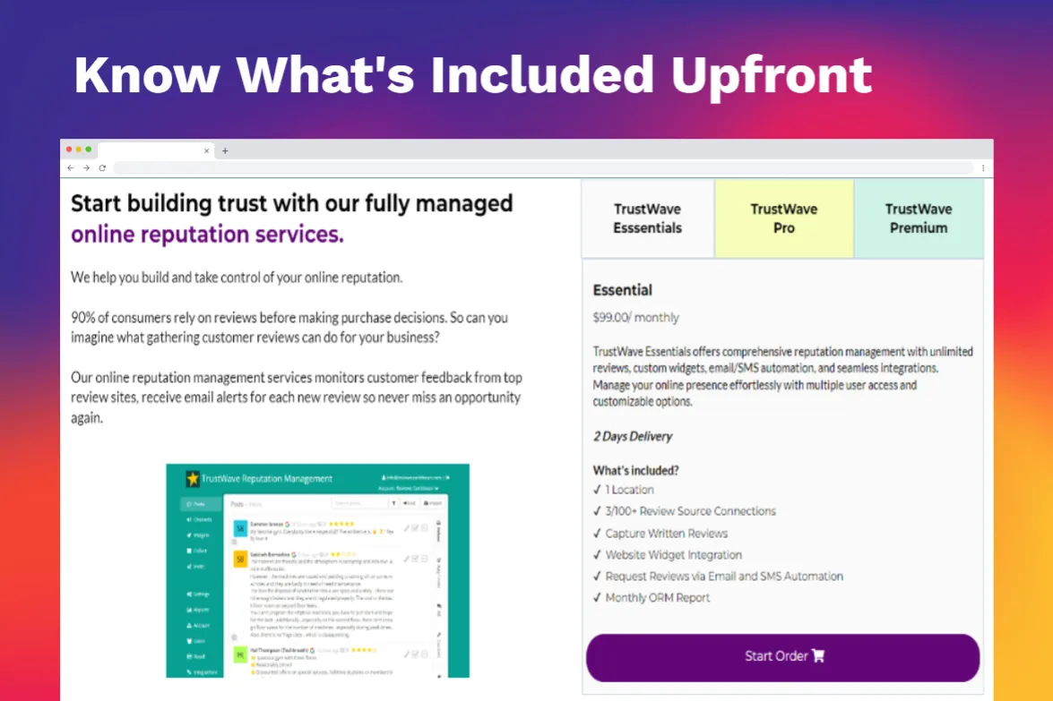 Our approach clearly outlines the service process, price, and what to expect from each service, similar to what you're used to on other platforms, but without the hassle of dealing with freelancers.