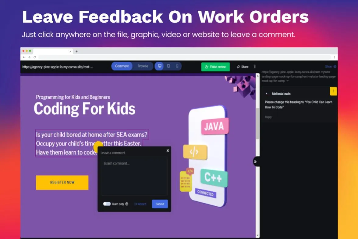 Our unique client review process allows for detailed feedback on any file or live website, including timestamped video comments and interactive feedback on images and PDFs, all streamlined for efficiency and clarity.
